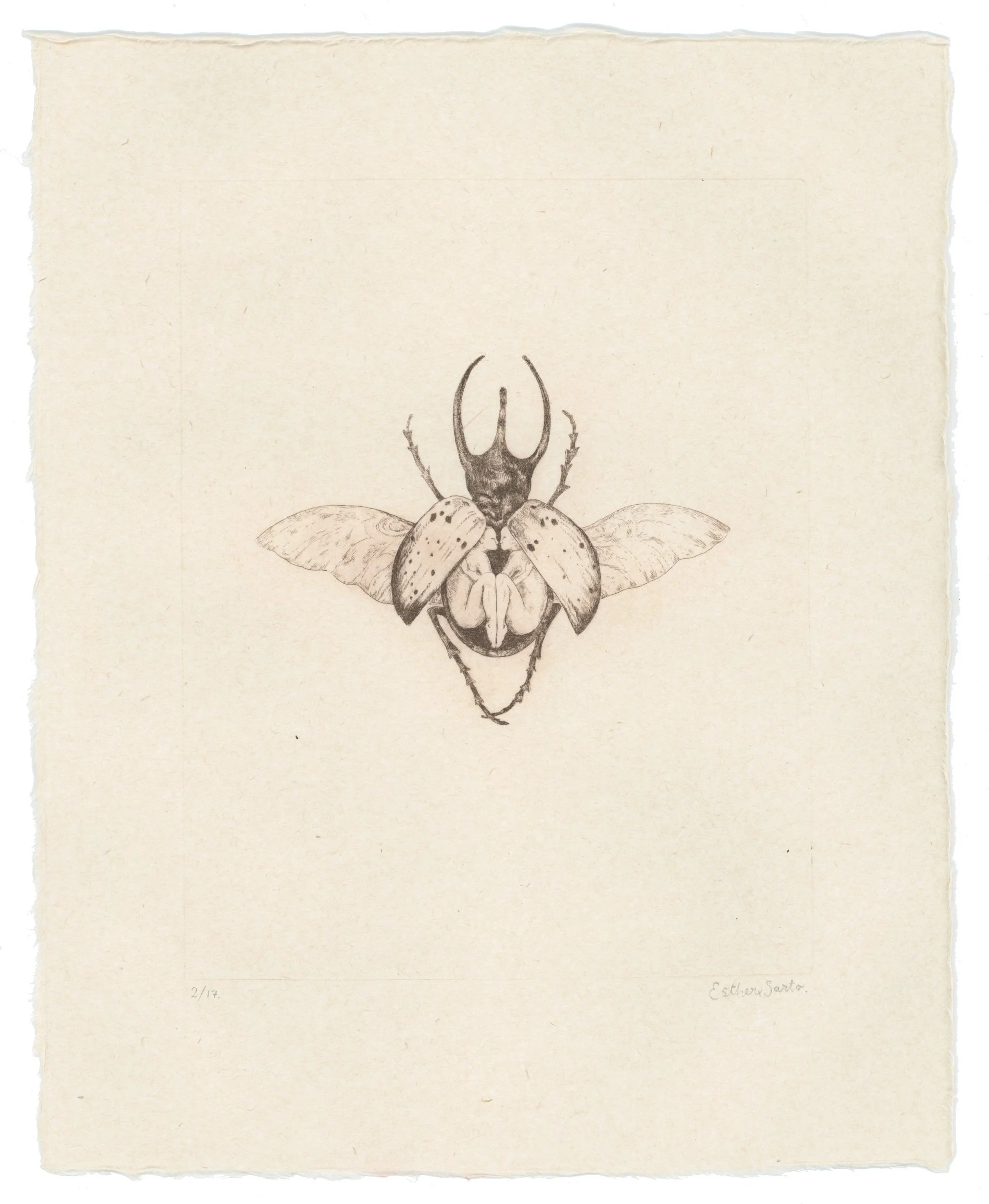 CHALCOSOMA COMPLEXUS ‘Chalcosoma Complexus’ by Esther Sarto.Drypoint Engraving on Kozo paper. Edition of 17.2025. Available here